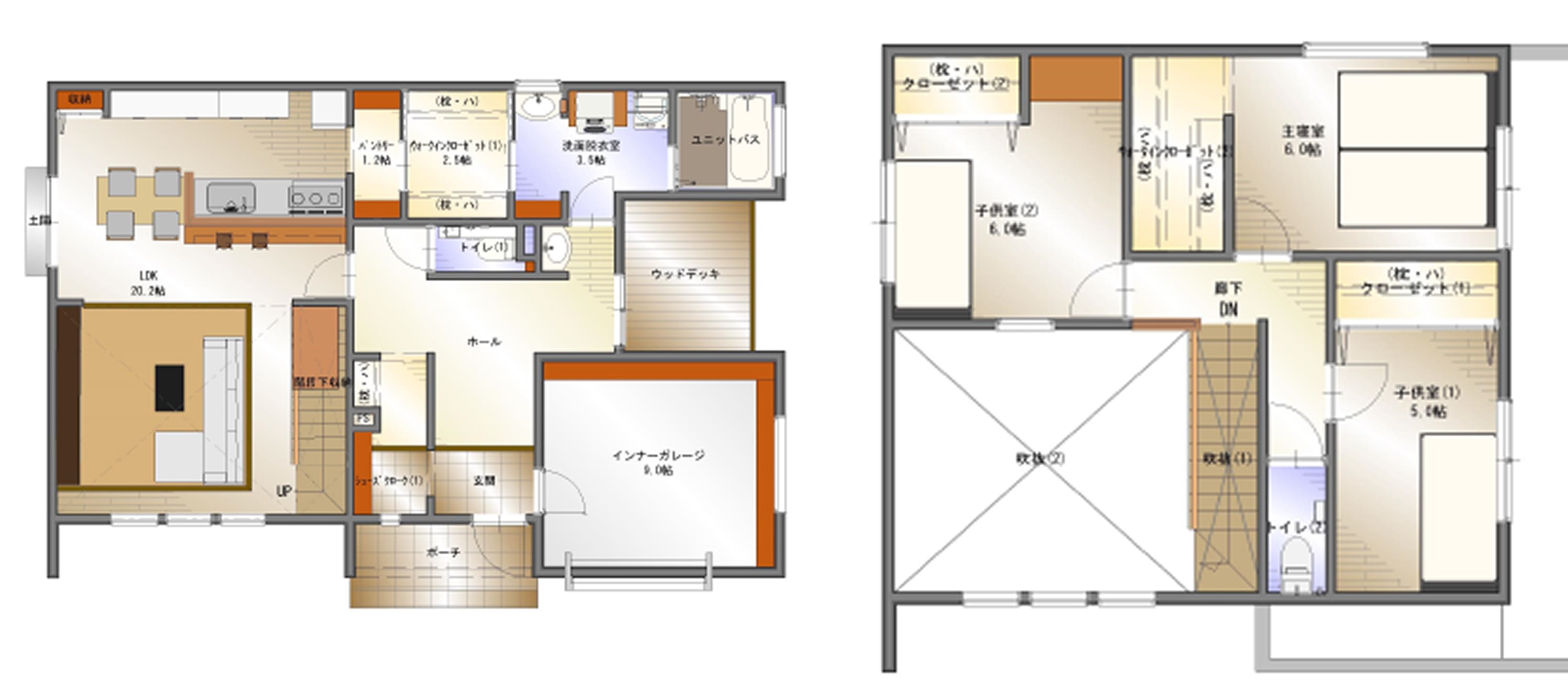- 合計延床面積:137.87㎡(41.70坪)※インナーガレージ含む