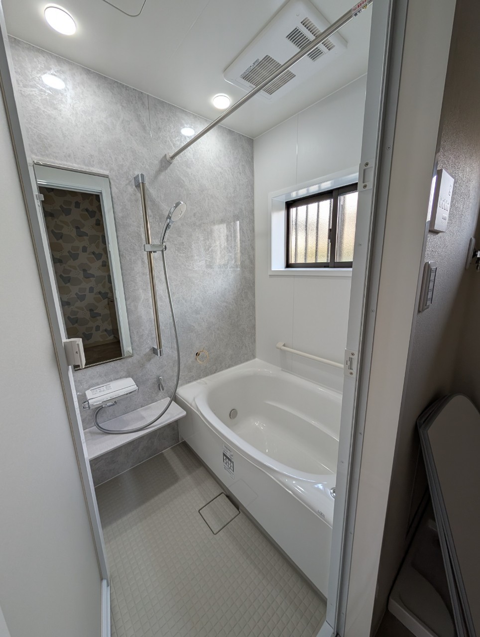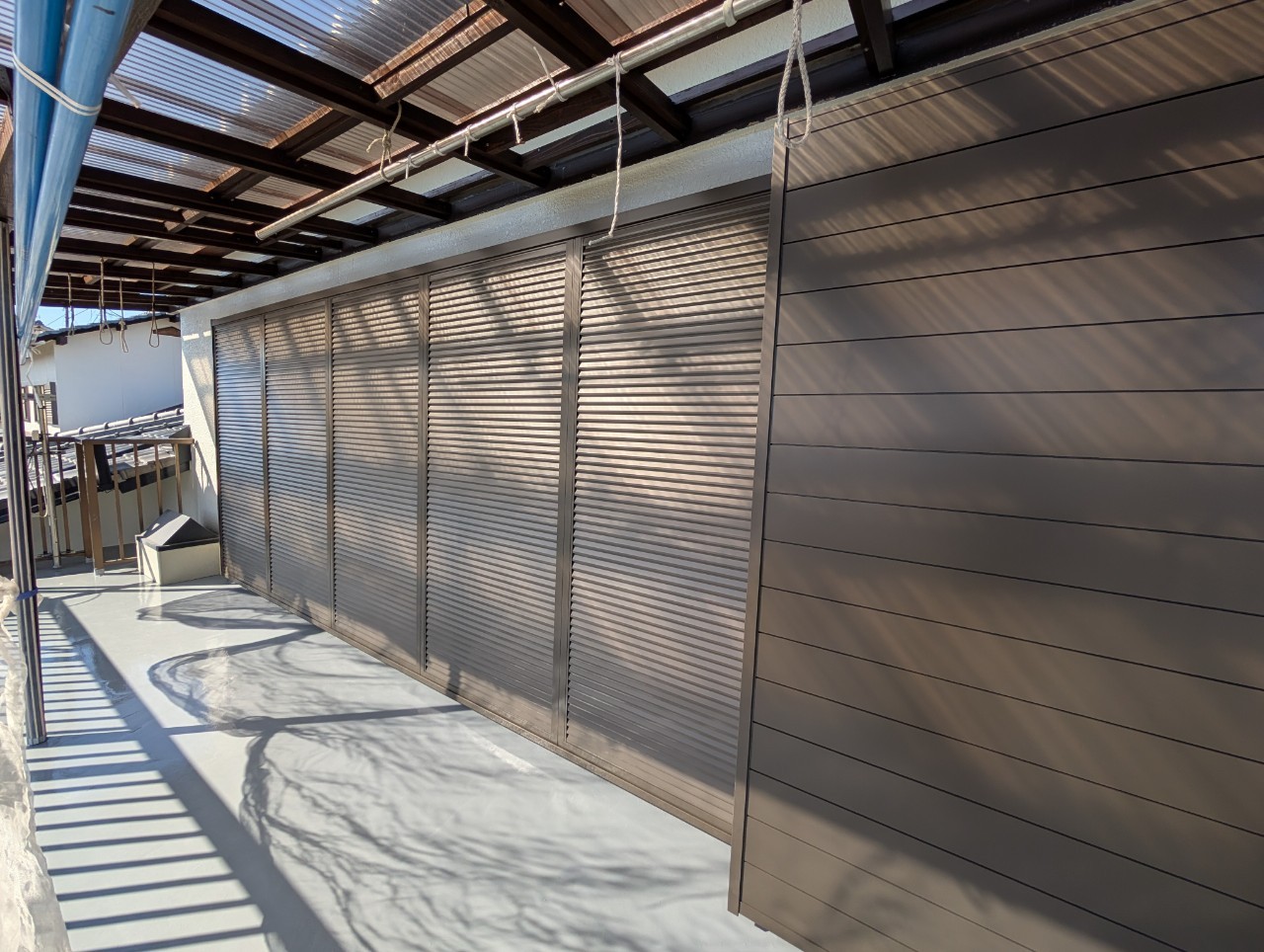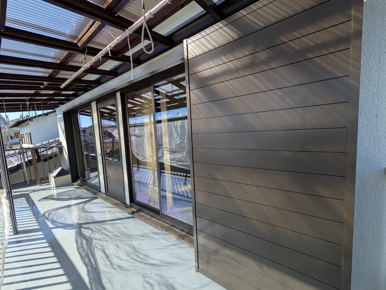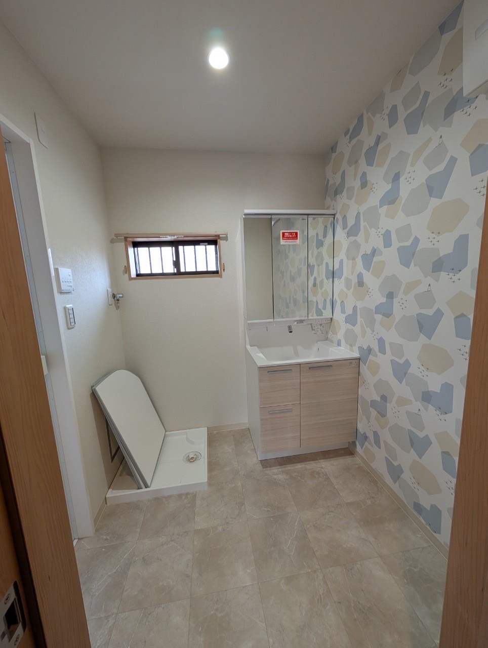 耐震化した構造、リビングが見渡せる対面キッチン、裁縫が楽しめるリビング横の造作机、キッチン前面の造作収納、台風対策の外部シャッター